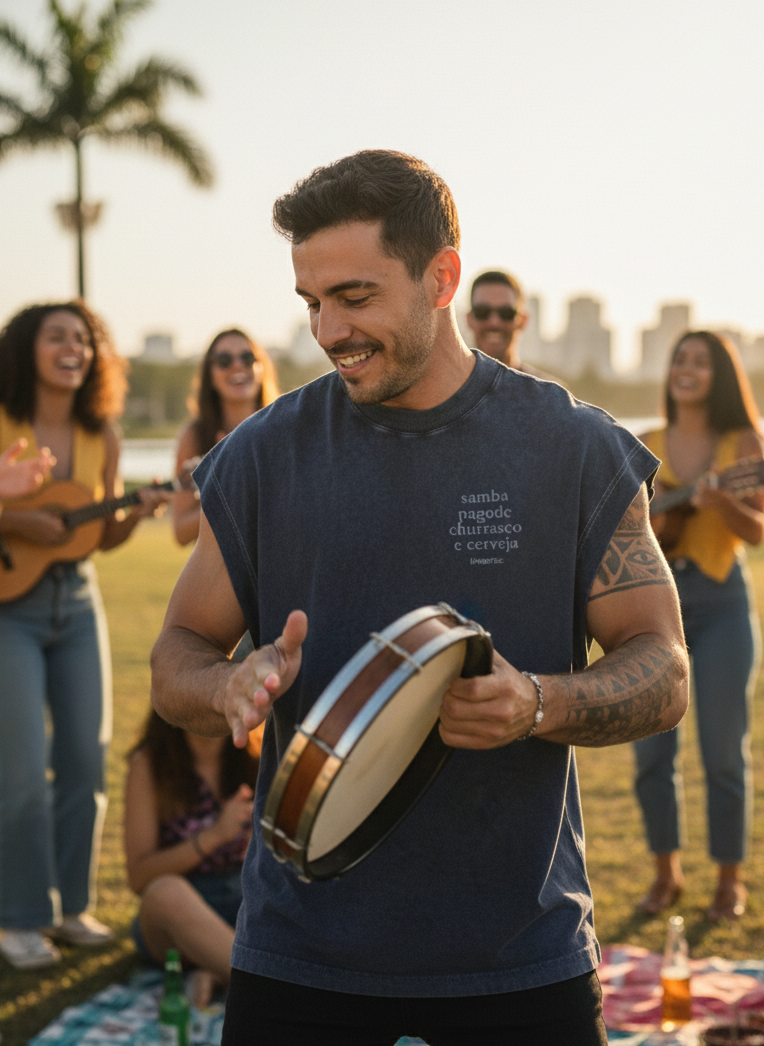 Inspirada na resenha brasileira, une música, amizade e bons momentos em um visual marmorizado cheio de personalidade. Ideal pra dias de sol, conversa boa e história pra contar.