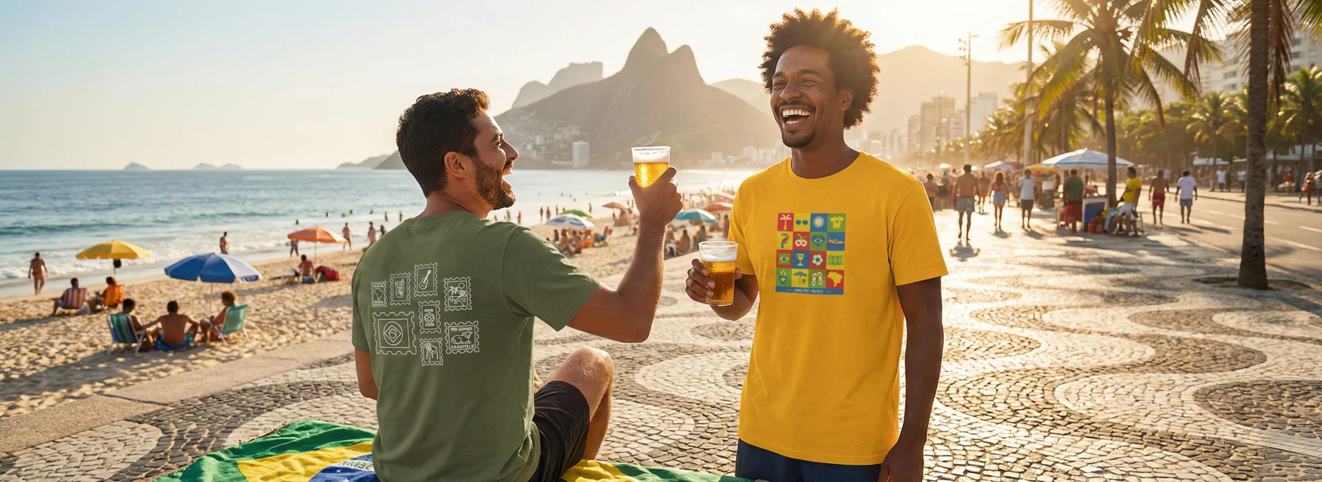 Resenha boa: praia, sol, cerveja gelada e risada solta com os amigos.